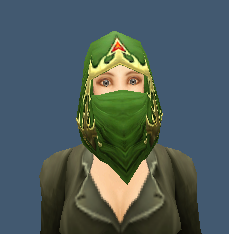 A nice green bandit-style helm for leather-wearers, there are quite a few sets that would go pretty well with this. Easily purchasable with 260 Justice Points.