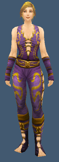 This set is a pretty unusual look for leather wearers, especially the shade of purple. It is pretty unique as far as WOW outfits go. This set drops in Wailing Caverns off various bosses. Easily farmable with a 30% drop rate.