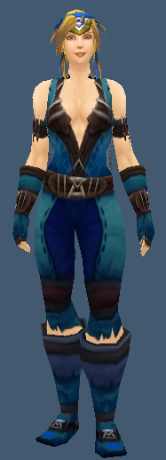 This has got to be one of the lowest cut chestpieces in the game on female, I am sure there is double sided tape hidden inside! Has a matching cloak. Check the AH for the pieces to this set.