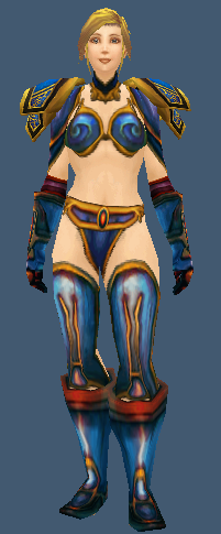 What can you say about a sexy blue plate bikini, super sexy set, although the set just doesn’t look as good on male toons! Drops from level 50s mobs, check the AH for this set.