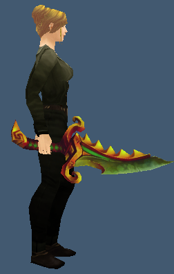 A nicely colored dagger for those looking for something a bit more unusual.  This weapon drops of Moroes in Kara with a 17% drop rate.